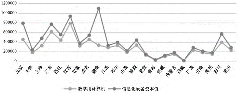 图1 中、东部与西部各省(区)教育信息化设备与资产情况