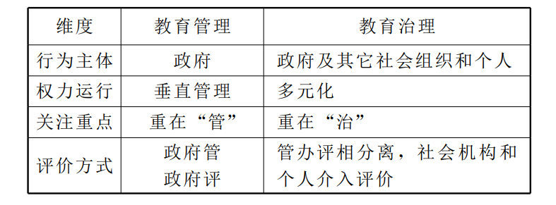 表1 教育管理与教育治理之区别(肖俊华,2014)