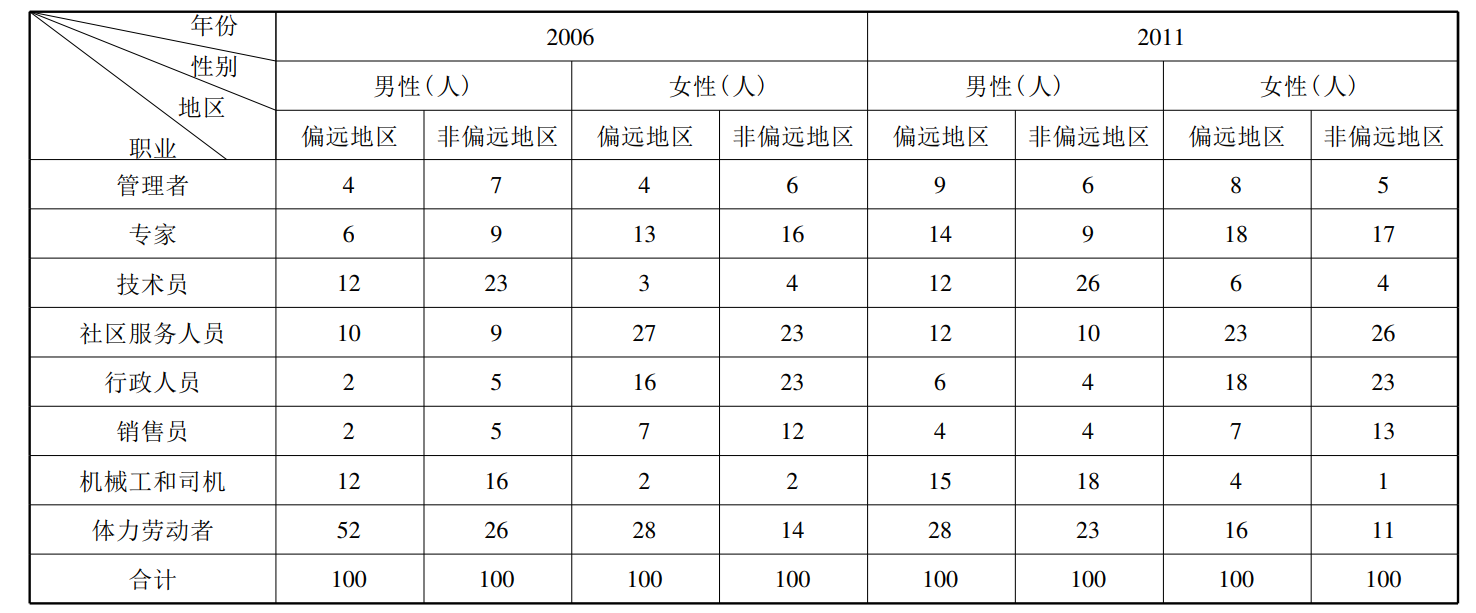 表3 2006年和2011年原住民与非原住民职业分布表