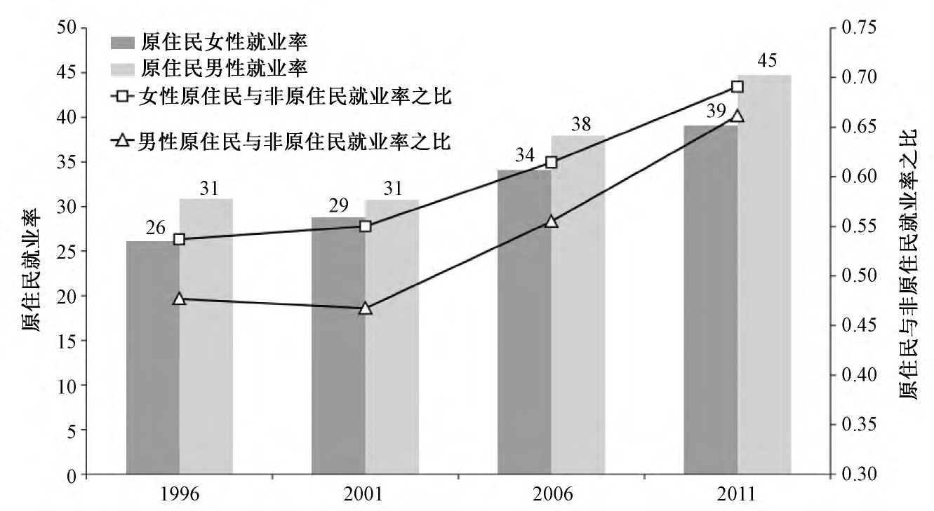 图2 1996-2011年澳大利亚原住民就业状况表