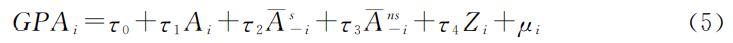 模型(1)中,GPAi是学生i的本科学业成绩,Ai是学生i的学习能力,