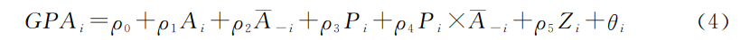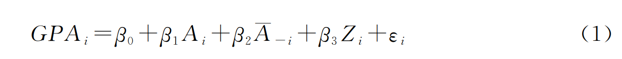 是学生i室友的学习能力,Zi是控制变量,εi是随机扰动项,β2代表室友学习能力对学生i学业成绩的影响,即本研究要识别的同伴效应。