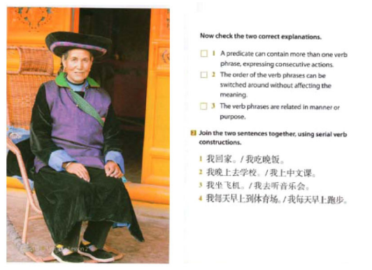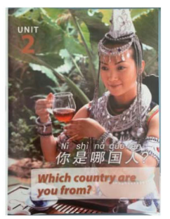 第一,从少数民族形象的呈现方式来看,《新实用》和《发展》两套国内出版的教材对少数民族的关注相对较少,特别是《发展》,六册教材仅有15例与少数民族相关的信息。其次,所选教材在处理课本难度和少数民族内容数量的关系时似乎没有清晰的规划,出现了中级阶段信息量爆发式增长或缩减的情况。另外,《新实用》和《发展》中“仅文”占比过高,也就是说,它们在呈现少数民族信息时模态单一,忽视了视觉模态的重要性。相反,《走遍》虽然大量使用了视觉模态,但“仅图”的占比高达总数量的一半。同时,大部分的图片信息都缺少背景介绍,面临被读者忽视并丧失存在意义的风险。不仅如此,《走遍》中一些图文信息的搭配也稍显不合理,例如图8中文本信息“你是哪国人?”与图片信息“敬茶的苗族少女”之间关联程度低,容易给学习者制造不必要的理解困难。