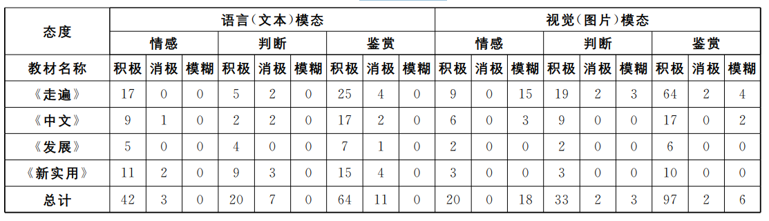 基于此,文章将在多模态分析理论的视域下聚焦《走遍中国》《中文听说读写》《发展汉语》及《新实用汉语》四套共20本国内外现行的汉语综合教材,运用态度评价理论,深入研究上述教材中语言模态和视觉模态对中国少数民族形象的共同塑造。同时,我们总结现状与问题,希望能为未来国际汉语教材的修改和编写提供信息参考。