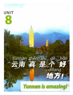 从空间特征看,教材所展现的人文特征数量略高于自然特征,分别为119例和102例。具体来说,自然特征具体表现为地理位置、地势地貌、气候和动植物等,例如《走遍》第三册展现的新疆那提拉草原风光(见图6);人文特征则包括人类的精神、行为、人所创造的物质等,例如图4所呈现的跳舞的藏族少女;值得注意的是,自然特征与人文特征也常常是共现的,例如《走遍》第四册在谈到云南大理白族自治州时,既提到了苍山、洱海的自然风景,也提到了崇圣寺三塔的人文建筑(见图7)。