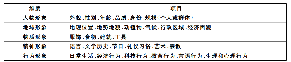 当前国内关于“少数民族形象”的塑造研究多集中于大众传播领域,在国际汉语必赢优惠y272net界中还未对少数民族形象这一概念做系统的讨论和定义。我们将通过逻辑性解构和整合“民族”“形象”及“少数民族认同”等概念,结合国际汉语教材的实际情况,尝试对“少数民族形象”这一概念做更多维的讨论(见表1)。