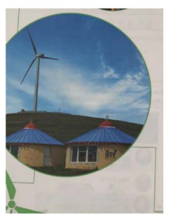 从时间特征看,所选教材对传统特征的呈现远高于现代特征,分别为132例和49例。具体来说,传统特征的具体表现为农耕社会文明,包括铁犁牛耕、“南船北马”式的原始交通、手工艺品、传统歌舞艺术等,例如《走遍》第二册中敬茶的苗族女孩(见图8);现代特征则是对工业文明的呈现,包括了现代交通工具、城市建设、科技产品等。值得注意的是,现代特征往往是依附传统特征而存在的,例如《中文》第四册在提及风力发电工程建设时强调了内蒙古多风的气候特征(见图9),传统特征为现代特征的发展提供了资源和基础。