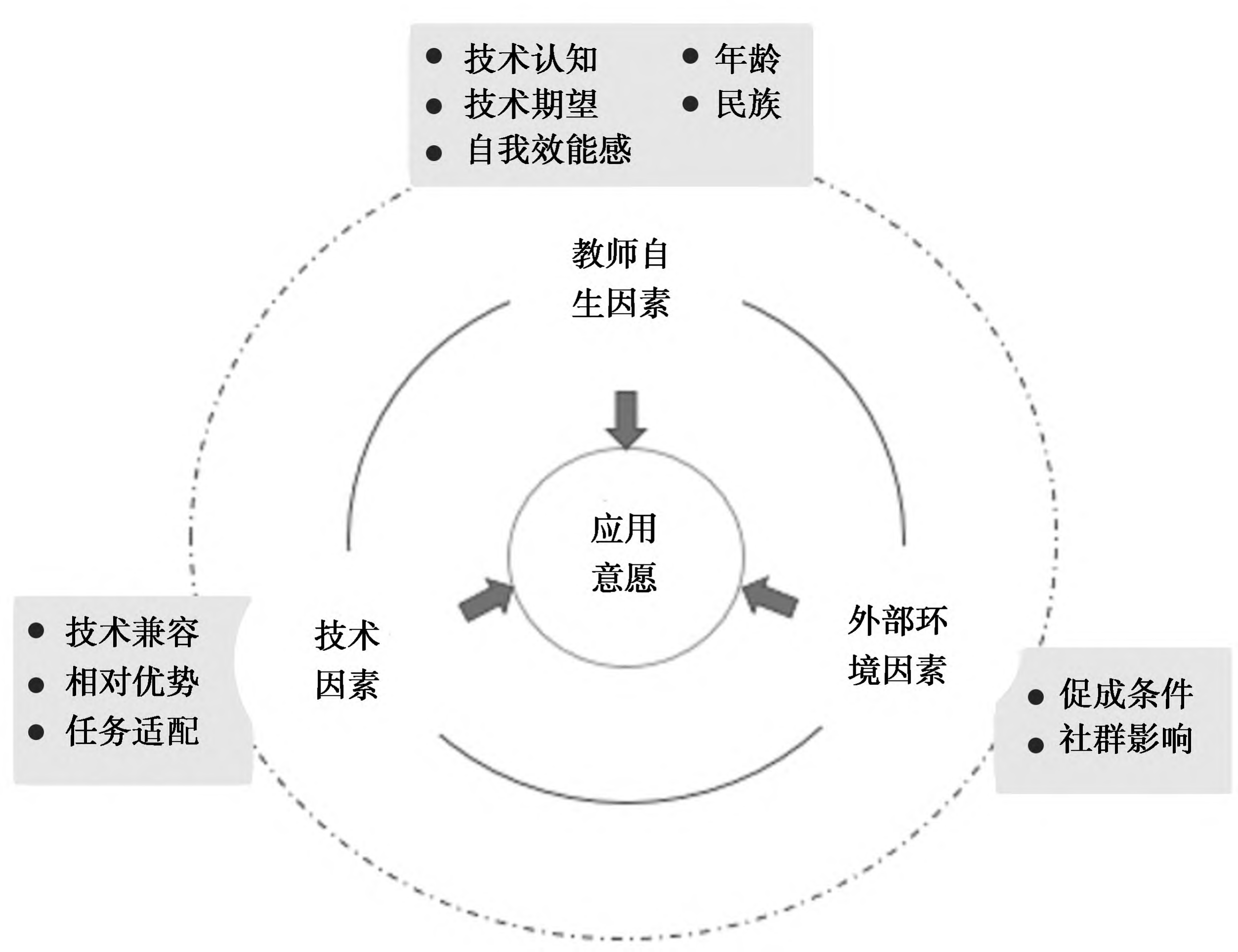 当技术介入教学,与教师发生交互作用时,除了应关注教师自身因素之外,还应关注人工智能助教技术因素,如技术兼容程度、技术相对优势与任务适配程度也会影响民族地区教师人工智能助教应用意愿。