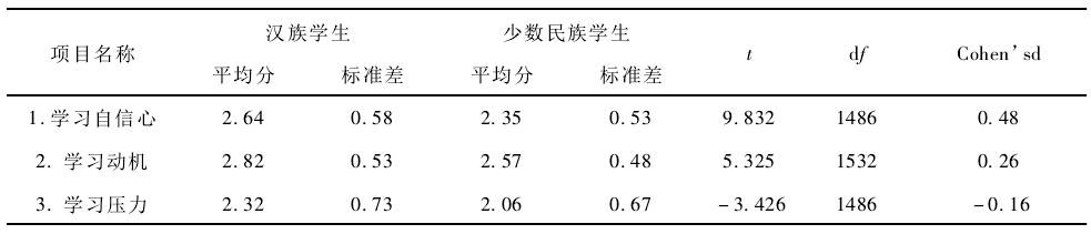2.2 少数民族学生与汉族学生数学学习心理的差异
