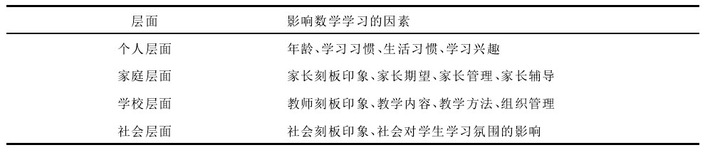 为了更全面准确掌握少数民族学生和汉族学生的数学差异,我们从个人、家庭、学校、社会四个层面构建了访谈框架(见表3),并围绕此访谈框架进一步设计了具体的访谈问题。