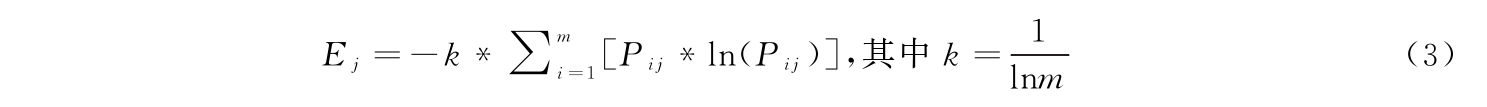 第三,计算职业教育高质量发展水平测度指标体系中各观测指标的信息熵值Ej: