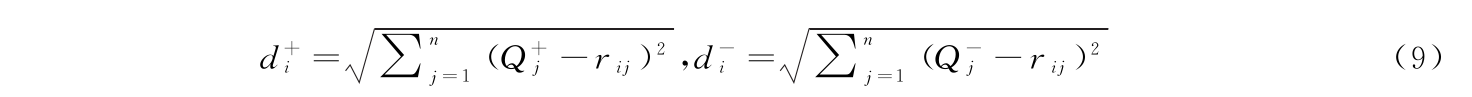 第九,计算各测度方案与最优方案Q+j和最劣方案Q-j的欧氏距离d+i和d-i: