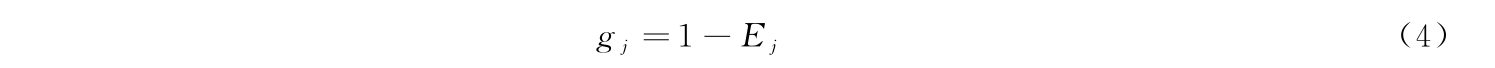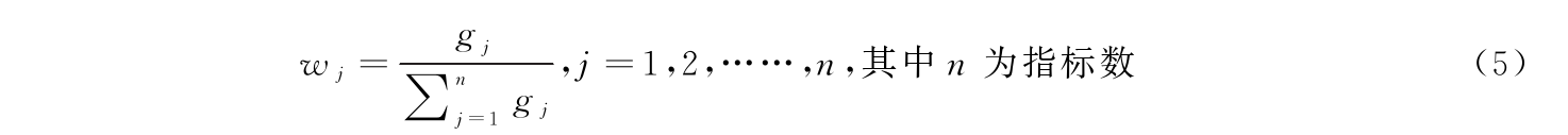 第四,计算职业教育高质量发展水平测度指标体系中各观测指标的差异系数gj: