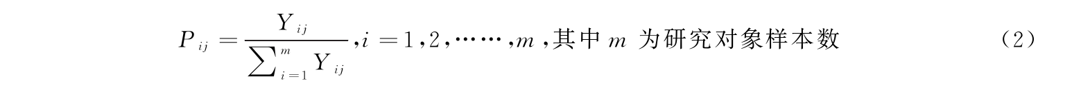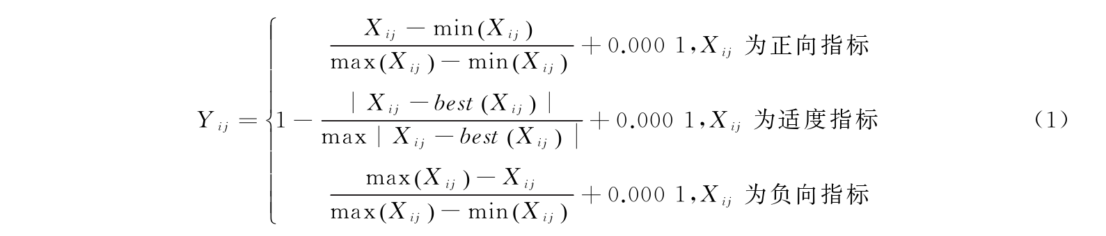 式(1)中,i表示省份,j表示指标,Xij表示i省份j指标的样本数值,其中max(Xij)和min(Xij)分别表示某一观测指标的最大值和最小值,best(Xij)表示某一观测指标的理想值。