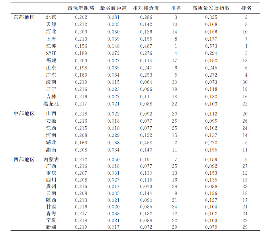 表3 2020年中国30个省份职业教育高质量发展指数相对接近度及其排名
