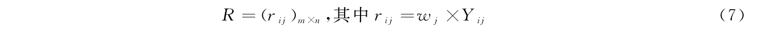第七,构建职业教育高质量发展水平测度指标的加权矩阵R:
