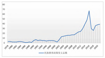 本文整理了自1978年至今我国各级政府发布的民族教育政策的数量(如图3)。