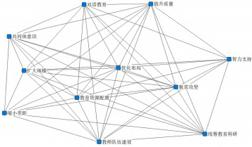 由图可见,改革开放为我国的民族教育事业发展注入了全新的活力,政策发文量较之前有着显著提升,政策关注焦点主要集中于构建民族地区现代教育体系;2002年,随着民族地区现代教育体系的不断完善,我国的民族教育发展也进入跨越式发展的阶段,这一阶段政策关注焦点也逐渐转移至提升民族地区教育的质量建设,聚焦于各级各类民族教育和办学水平以及提高少数民族人才的培养质量;2017年,“中华民族共同体意识”被正式写入党章,与此同时,随着我国民族地区现代化教育体系的逐渐完善以及教学质量的不断提升,政策关注焦点转移至铸牢各族师生中华民族共同体思想基础上。
