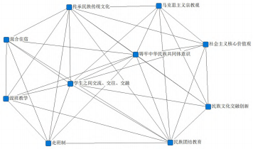 通过对民族教育政策关注焦点的梳理发现,我国民族教育政策的变迁史实际上也从侧面反映了我国民族地区教育生态逐渐完善的过程,其过程呈现出从宏观到中观再到微观,由表及里、逐层递进的特点。为此,本文运用Ucinet软件,提取上述三个阶段中所发布的民族教育政策中的关键词,绘制共现图,并结合“政策关注焦点—教育生态系统”的二维分析框架进一步探究我国民族教育政策关注焦点及教育生态系统在不同时间序列中逐渐完善的演进逻辑。