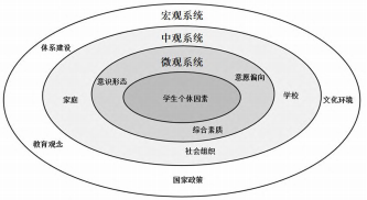 本研究结合Bronfenbrenner[13]和Charles[14]所提出并发展的教育生态理论,将我国民族教育生态系统划分为宏观系统、中观系统和微观系统。其中,宏观系统主要包括民族教育制度建设、民族教育政策、文化环境以及教育观念等因素;中观系统主要包括家庭、学校及其他社会组织等参与到民族教育生态系统建设的各主体的行为;微观系统则是个人,即少数民族学生的个体因素,包括意识形态、意愿偏向以及综合素质等(图1)。