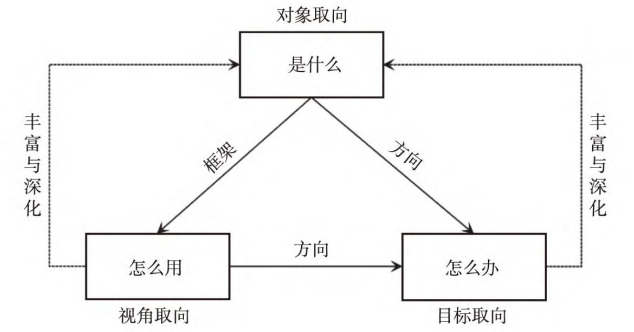 2014年以来,习近平总书记关于中华民族共同体意识的重要讲话和论述为学术界的相关研究提供了根本性的方向指引,推动了大量研究成果的出现。在梳理大量文献的基础上,我们尝试将关于中华民族共同体意识的相关研究归纳为三种取向:“对象取向”“视角取向”和“目标取向”。这三种研究取向为我们多方位地理解和思考中华民族共同体意识提供了大量的理论和经验参考,同时这些研究取向各自所存在的不足也为我们下一步的研究提供了新的思路。首先,对象取向着重于解释中华民族共同体意识的内涵,并寻求为实证研究提供理论和方法的基础。在这个研究取向之下,我们看到了研究者将中华民族共同体意识这一概念不断学术化的努力和已经取得的成绩,这是值得肯定的。但是,对于中华民族共同体意识的操作化和高质量的实证研究成果则有待继续努力。其次,视角取向着眼于解释中华民族共同体意识视野下不同民族议题的重要价值和发展方向,而这些研究议题涉及不同民族与民族间的可能已经习以为常的事物。在这个研究取向之下,我们看到了研究者们基于中华民族共同体意识的视角,为那些已经习以为常的社会事实找到了另一种解读方向和方法。但是,研究者却不仅很少在充分定义中华民族共同体意识的基础上开展相关研究,从而使得这一视角与所分析的内容的紧密度不够,而且一些研究者对中华民族共同体意识是一种“视角”还是“目标”的角色定位含糊不清。再次,目标取向着重于解释铸牢中华民族共同体意识的理论基础,并不断寻求多元化的、合理化的理论路径和实践策略。在这个研究取向之下,我们看到了研究者们为铸牢中华民族共同体意识所作出的努力,也看到了已经形成的典型性的实践成果和未来的研究路向。但是,这些研究的理论成果有余而实证成果则显得不足。基于此,我们可以进一步总结三种研究取向之间的逻辑关系,为我们思考和研究中华民族共同体意识提供思维框架(如图1所示)。