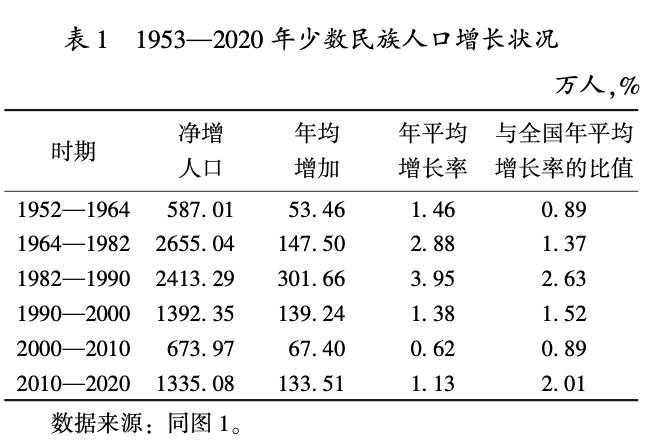 本文利用七普数据、以往历次人口普查的少数民族人口数据,给出了当前少数民族人口分布的现状及变动情况,并对我国少数民族人口增速较高的原因作了初步分析;构建了人口分布相对均匀度的度量指标,对我国少数民族人口分布的均匀程度进行研究,给出了我国少数民族人口分布变动的特征和影响因素,得出如下主要结论。