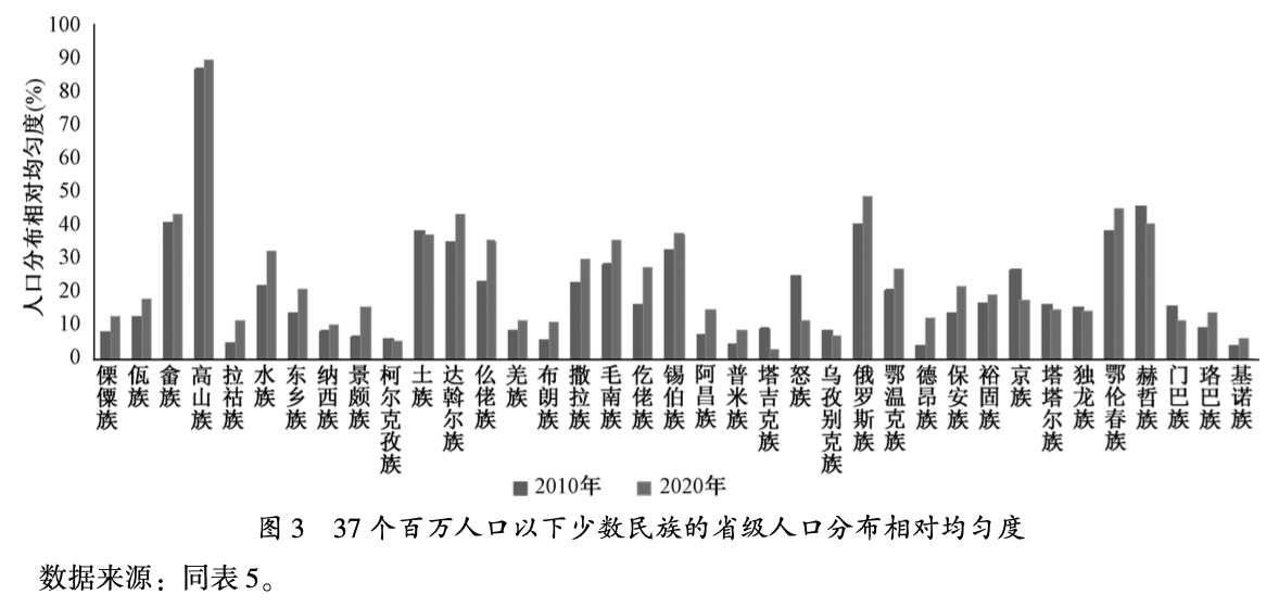 关键词:少数民族人口;人口分布相对均匀度;人口普查;交往交流交融